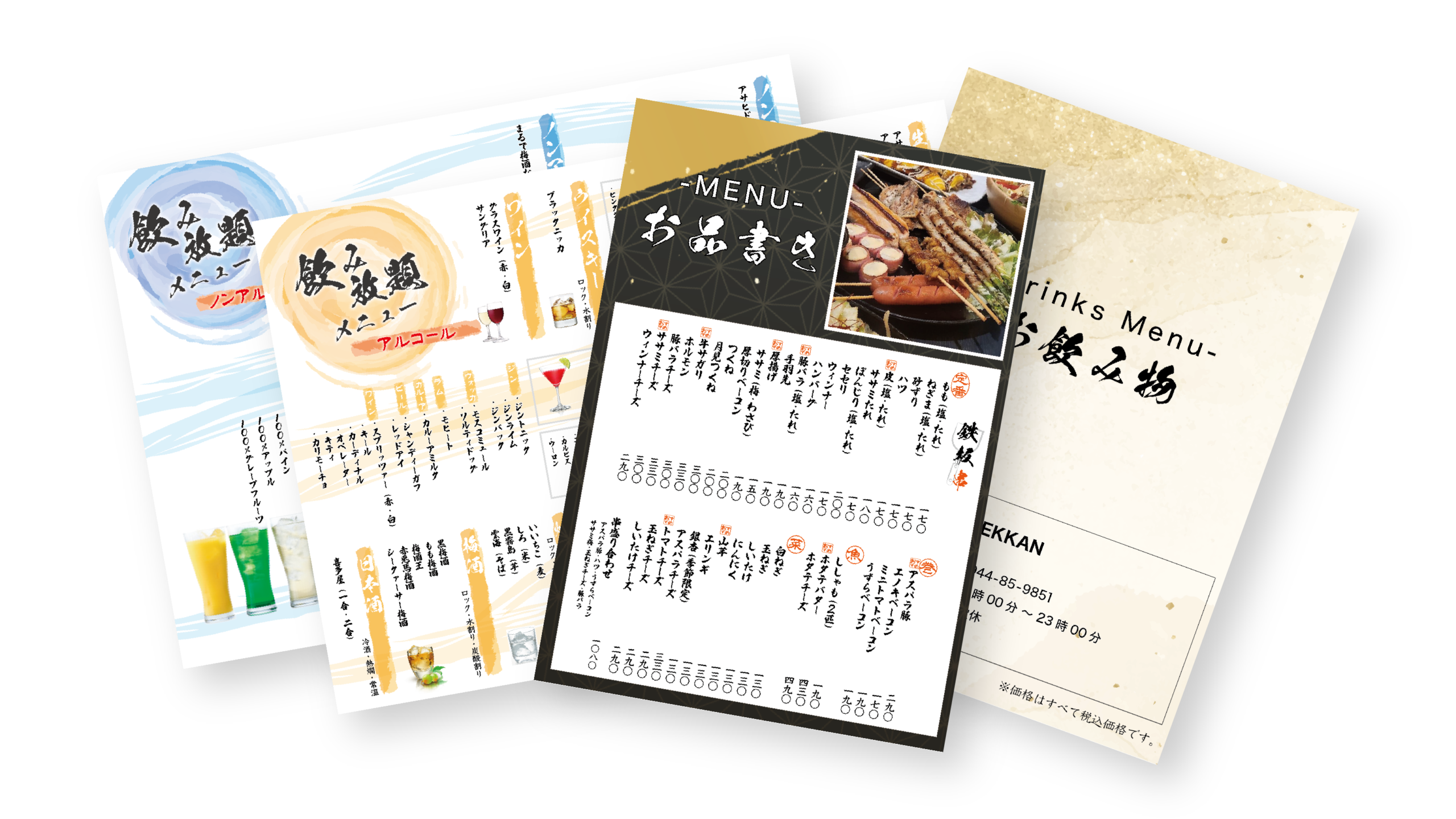 鉄板串 BEKKANの持ち帰りメニュー表を制作しました。