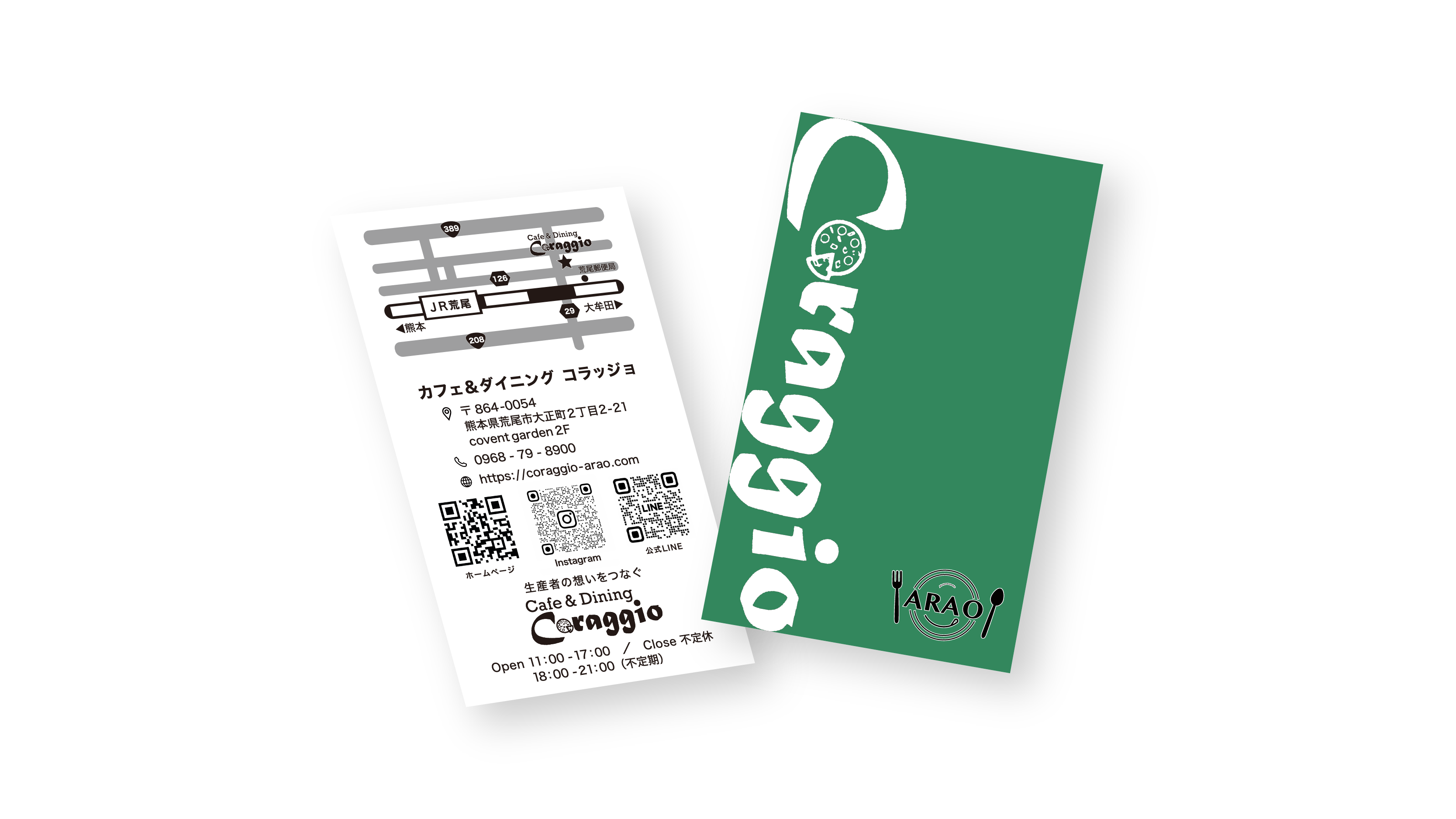 Cafe&Dining Coraggioのショップカードを制作しました。