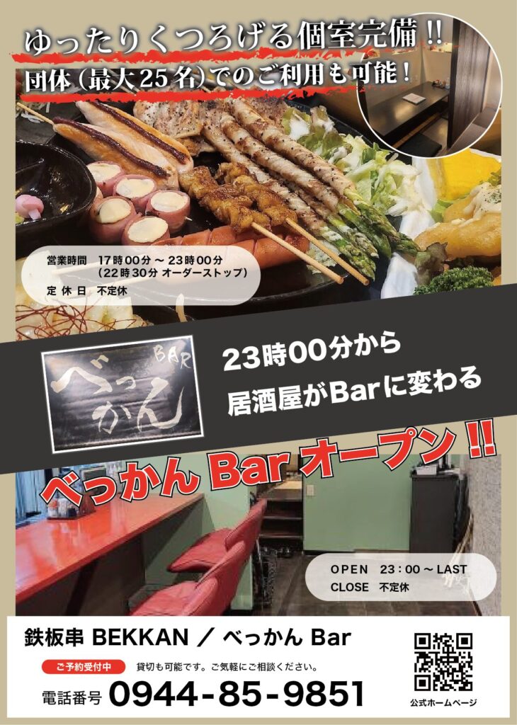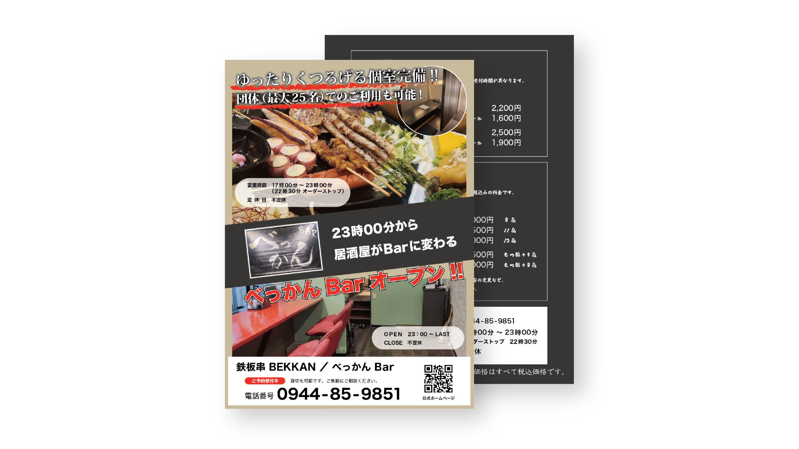 鉄板串 BEKKANの店舗チラシを制作しました。
