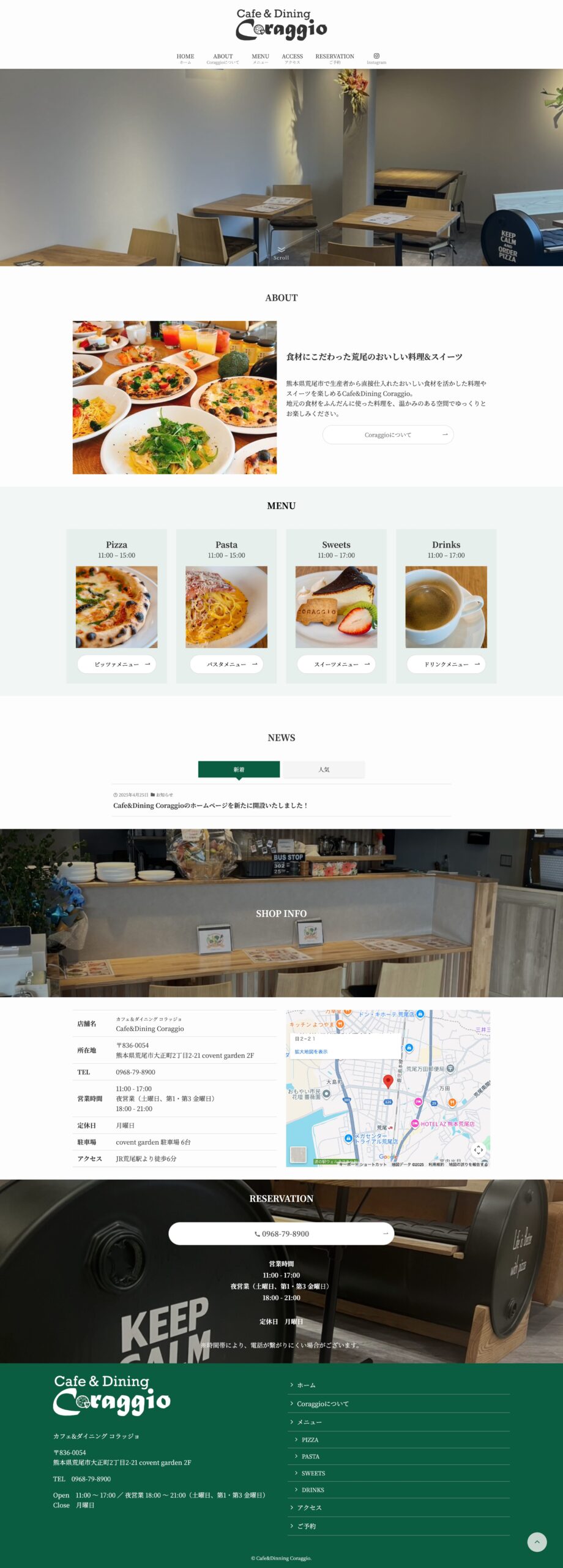 Cafe&Dining CoraggioのWebサイトを制作しました。